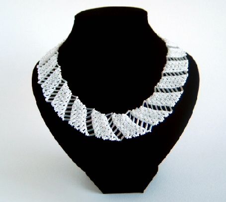 Collier aus Rocailles und Stifte (weiß, crystal, blanc ). Exklusives Design.